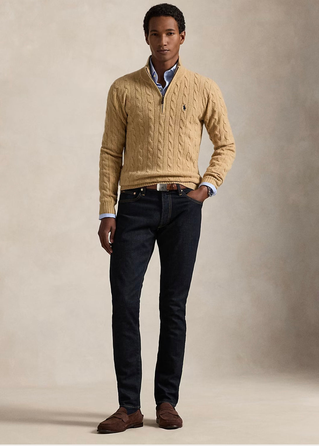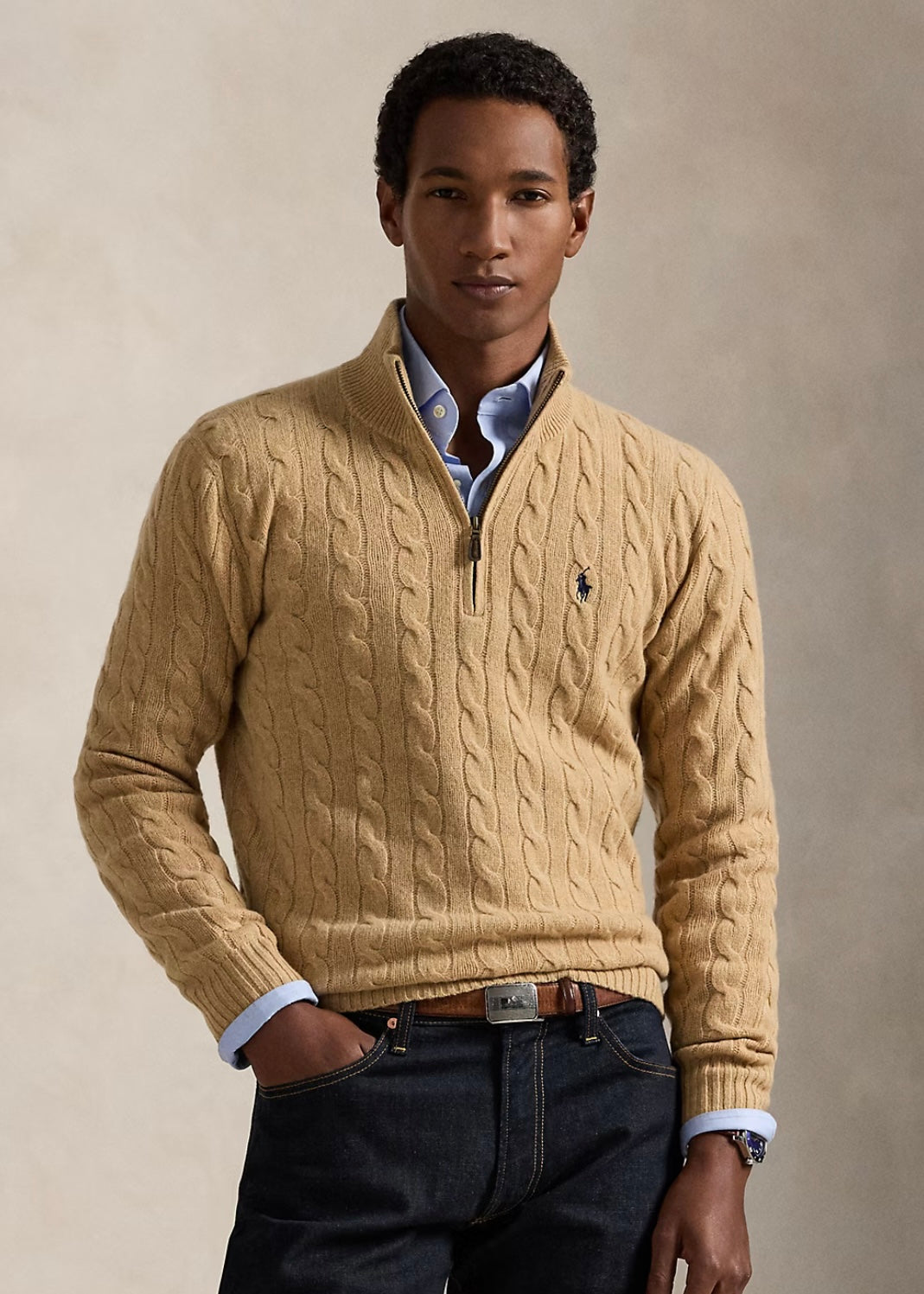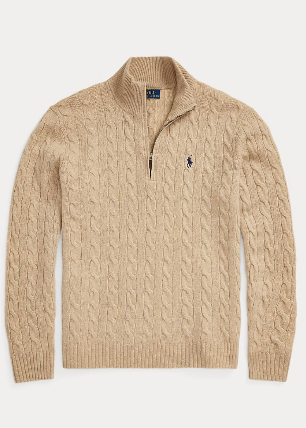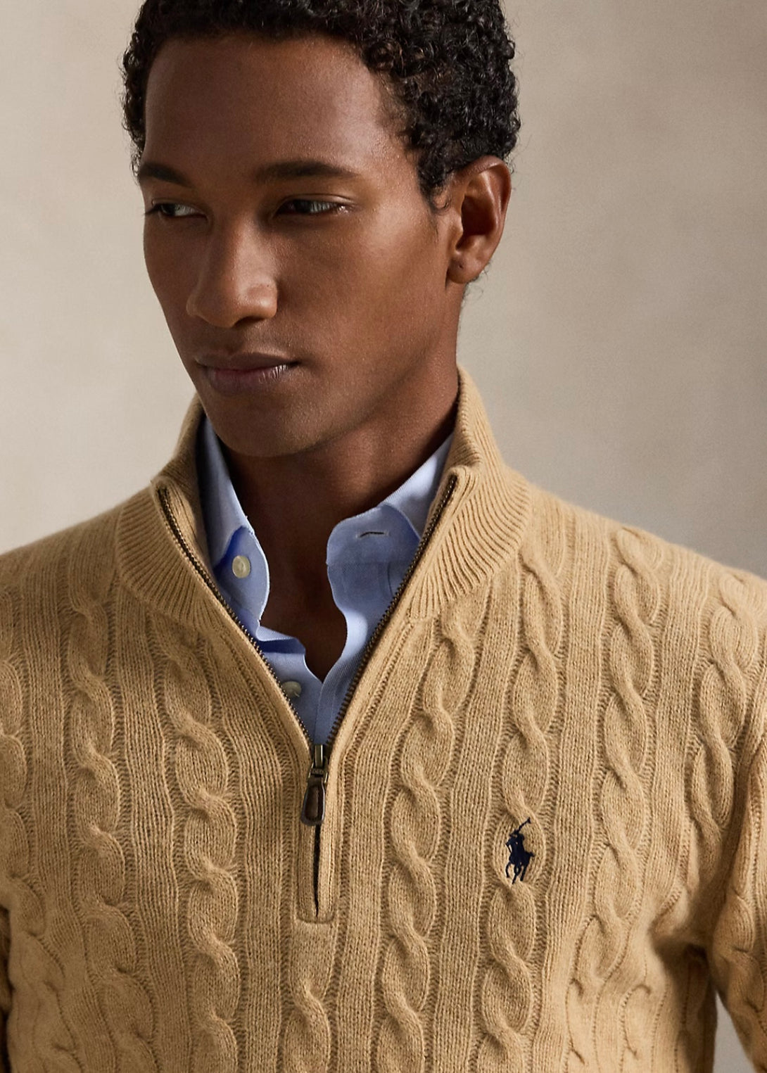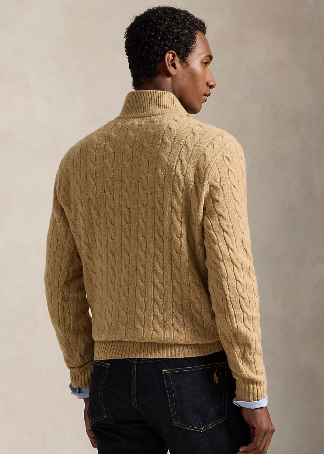 RL Camel Melange Cable Knit Wool Cashmere Jumper (00563)