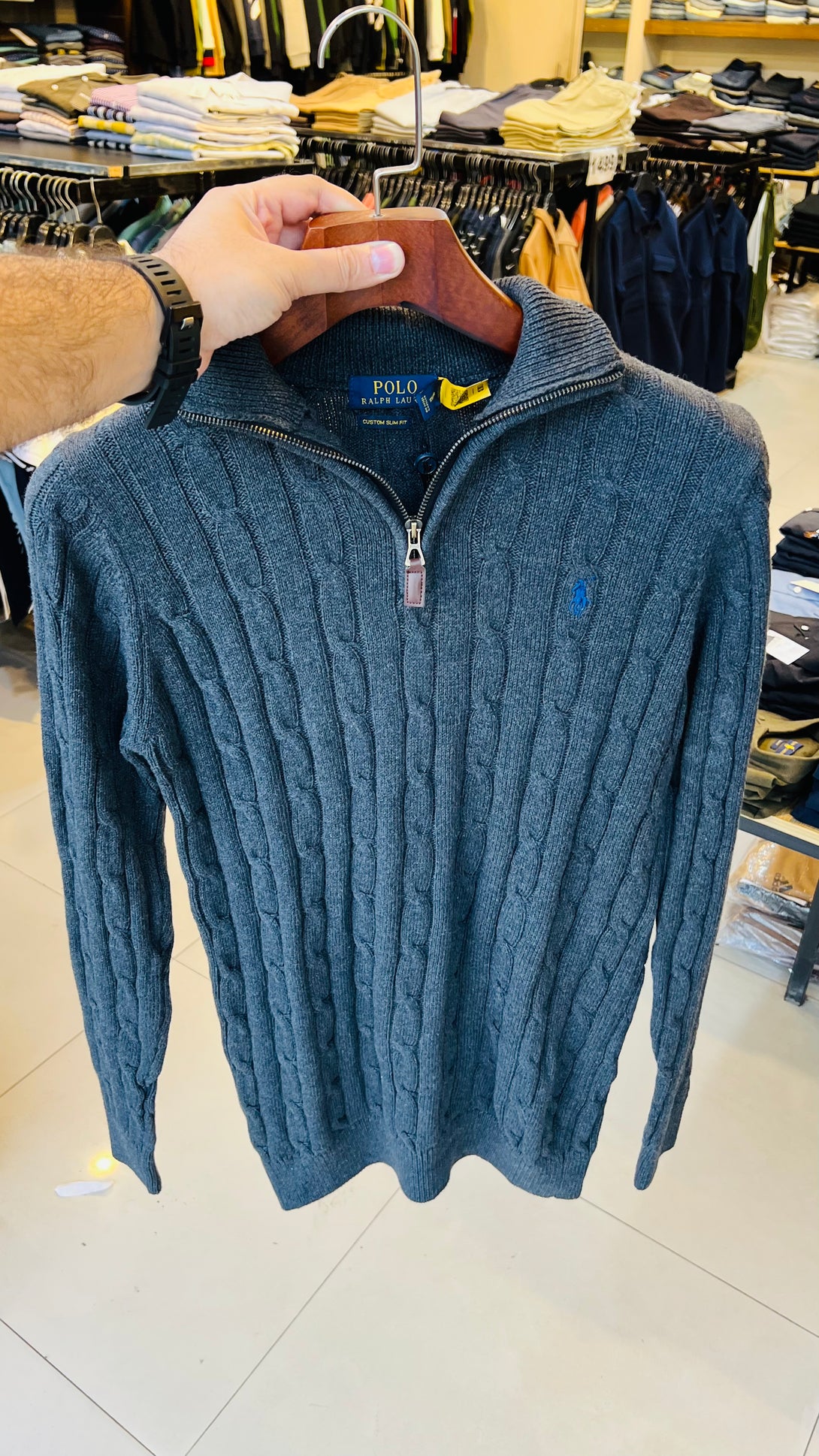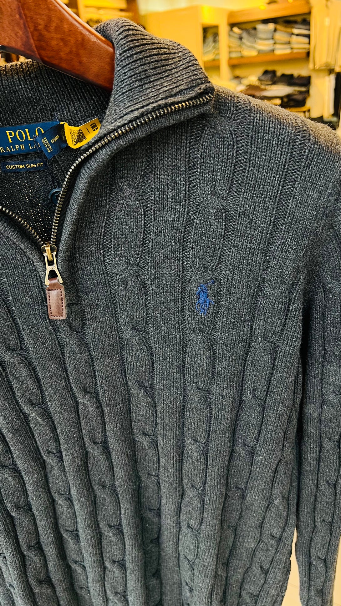 RL Charcoal Grey Cable Knit Wool Cashmere Jumper (00563)