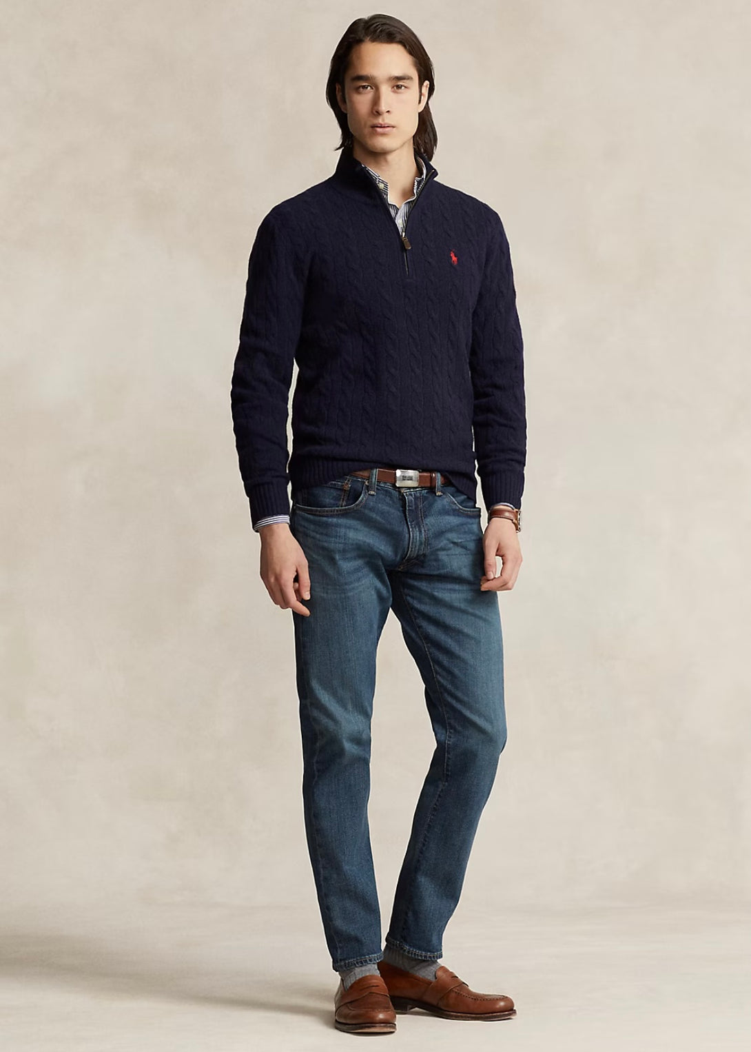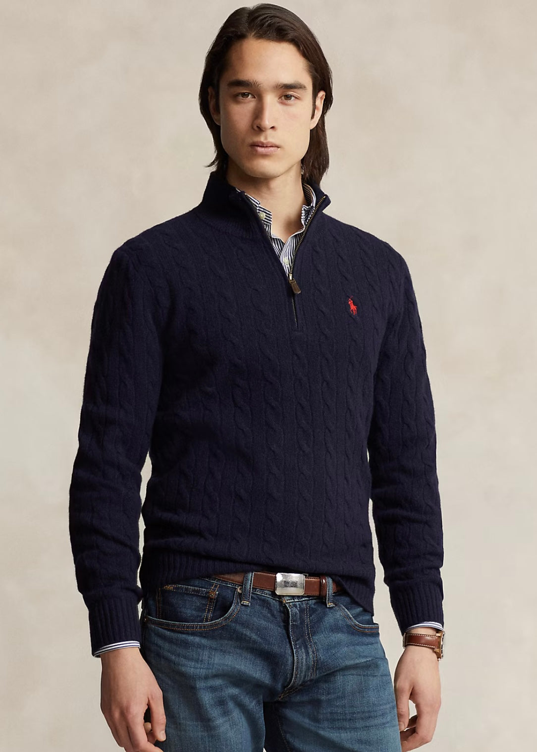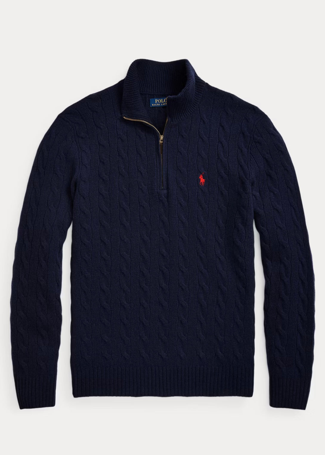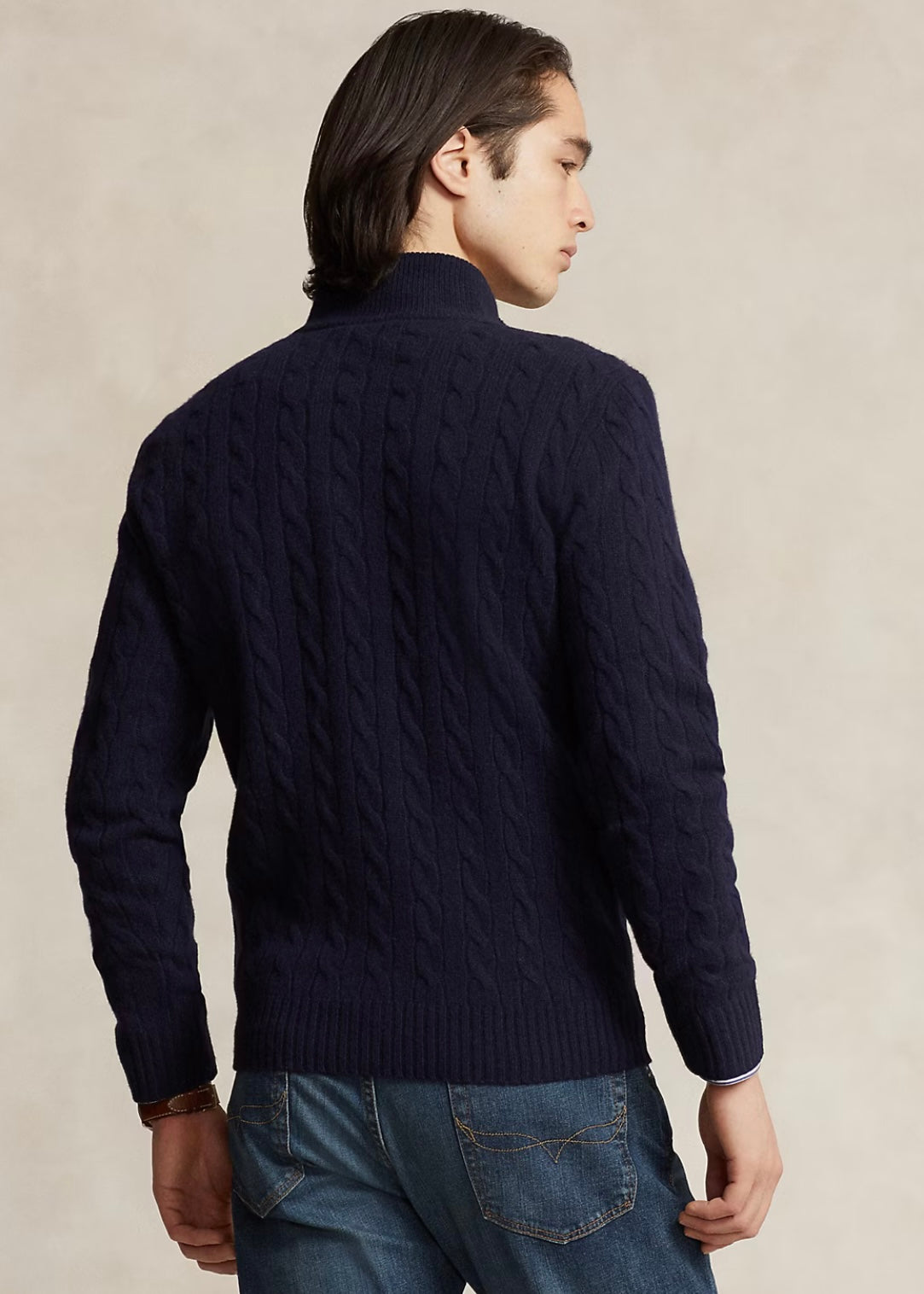 RL Navy Cable Knit Wool Cashmere Jumper (00563)