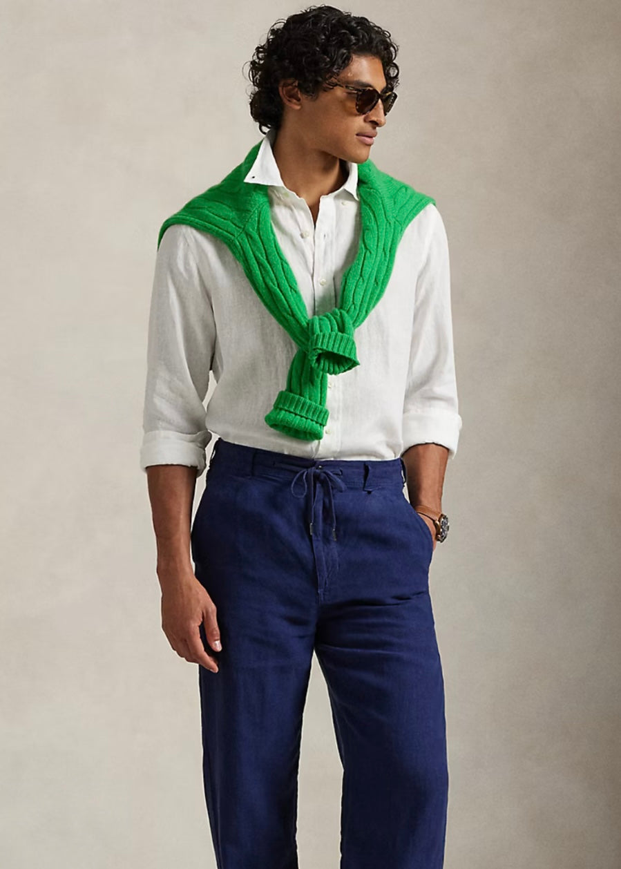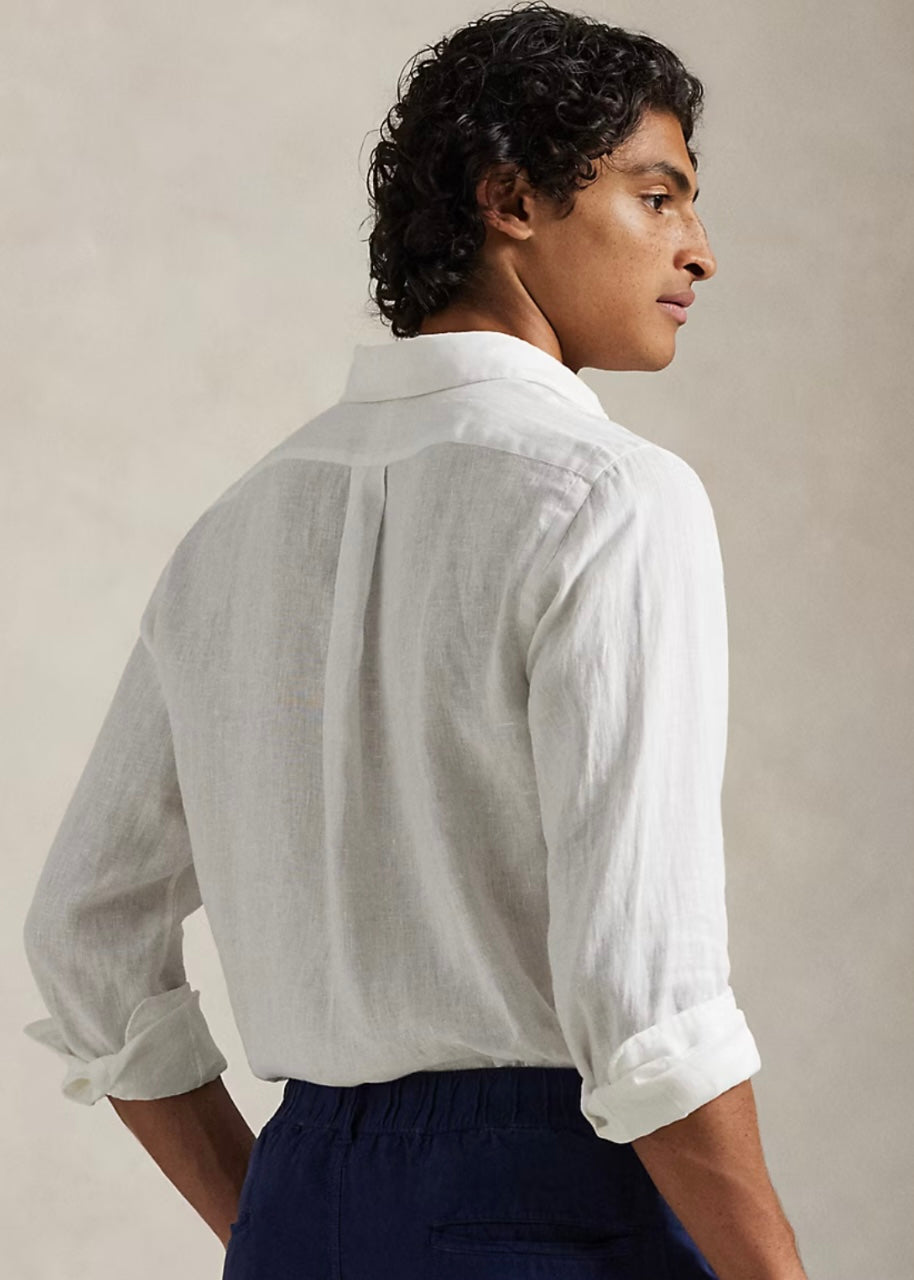 RL Linen Blend White Button Down Shirt (00)